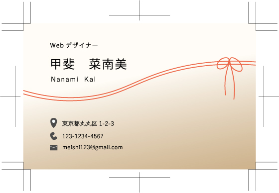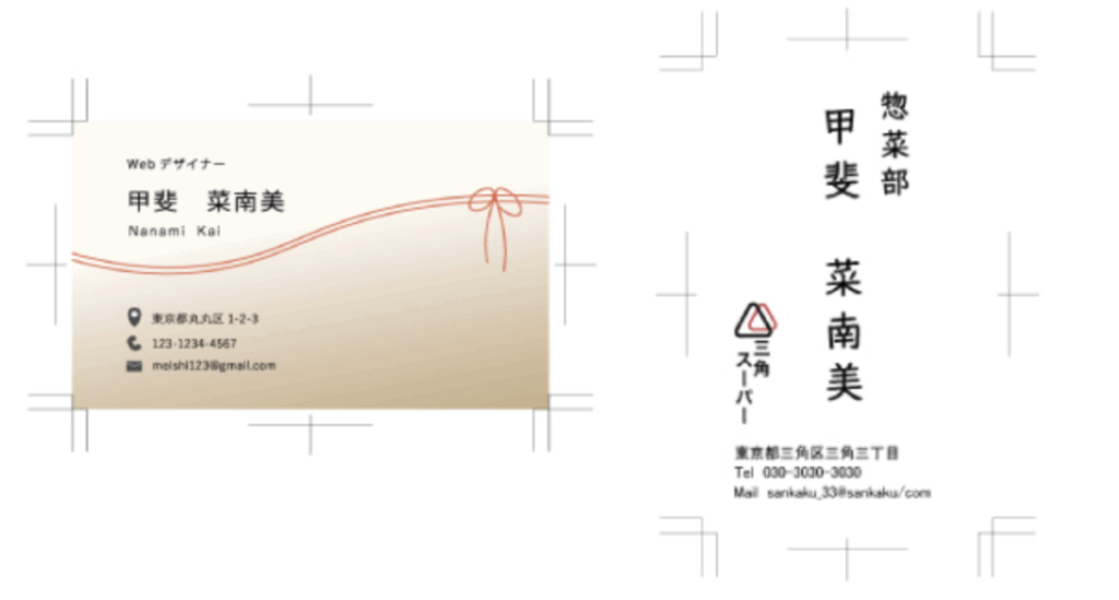 - 横向きの名刺はまず左上に目が行くと感じたので、名前が左上に来るようにしました。